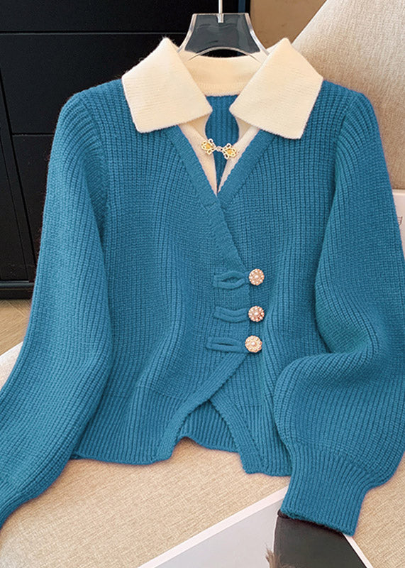 Natural Red Peter Pan Collar False Two Pieces Knit Top Spring
