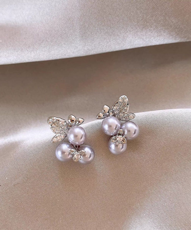 Boutique Silk Sterling Silver Zircon Grape Pearl Stud Earrings