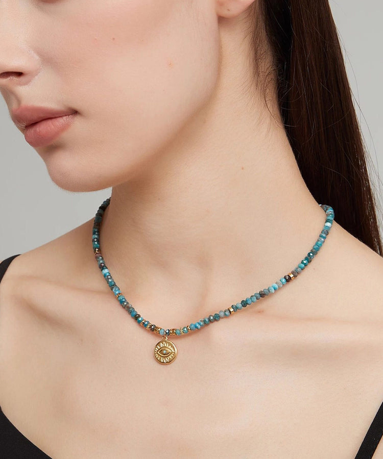 Bohemian Blue Stainless Steel Amazonite Beading Pendant Necklace
