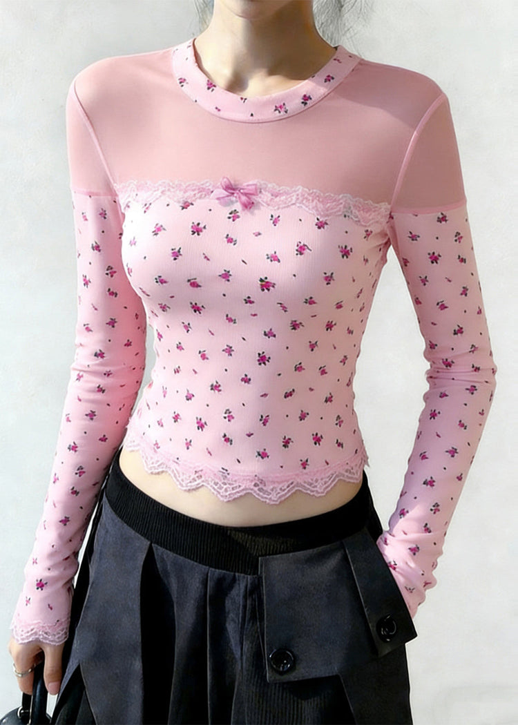 Casual Pink Print Patchwork Tulle Shirt Tops Spring