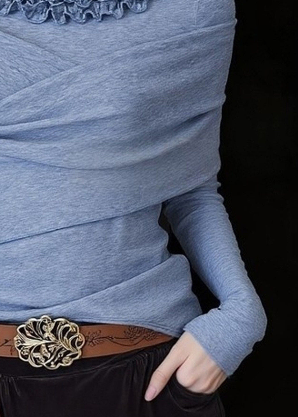 Classy Blue Ruffled Cross Cotton Shirt Top Spring