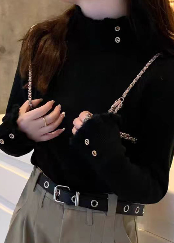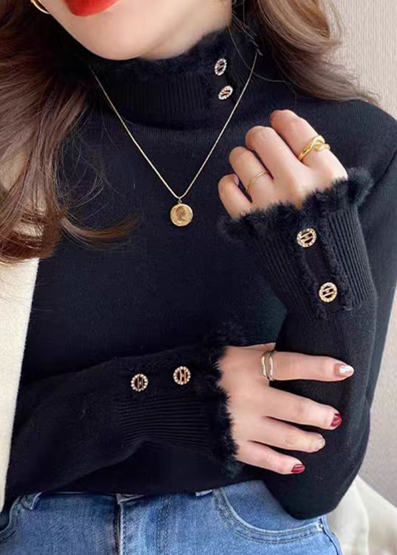 Organic White Turtleneck Ruffled Patchwork Solid Cotton Knit Sweater Spring