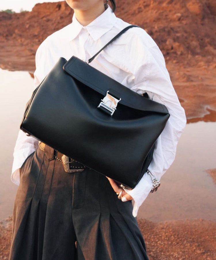 Boutique Black Large Capacity Durable Calf Leather Shoulder Bag