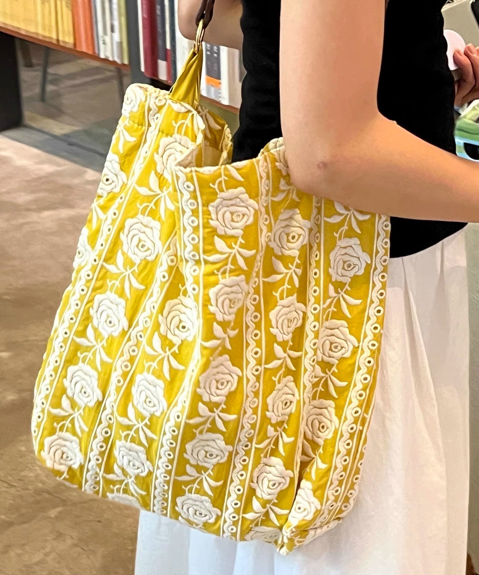 DIY Yellow Embroidered Flower Canvas Shoulder Bags