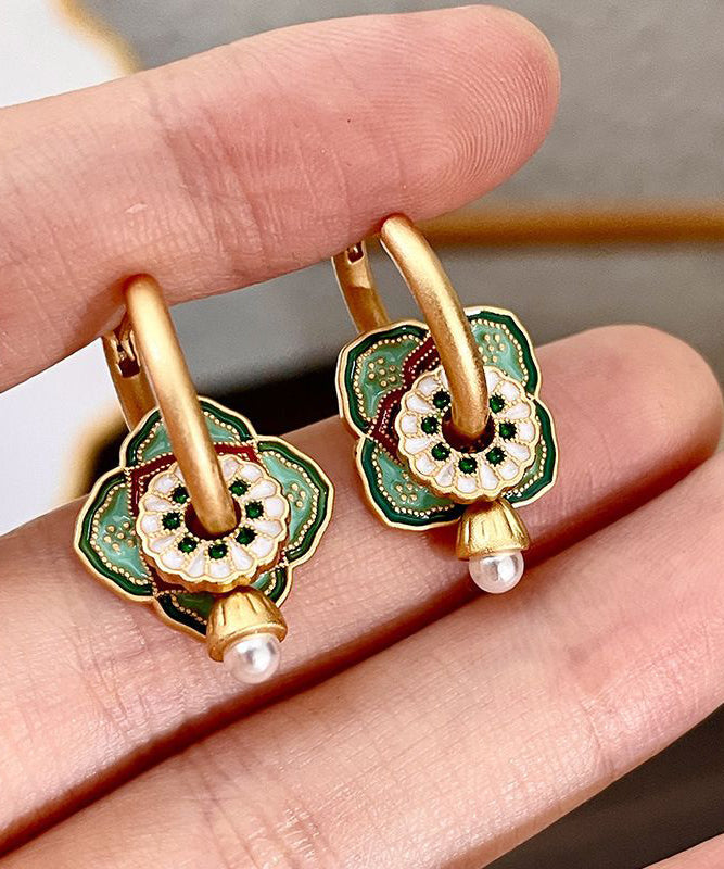 Chinese Style Rainbow Copper Overgild Dripping Glaze Floral Hoop Earrings