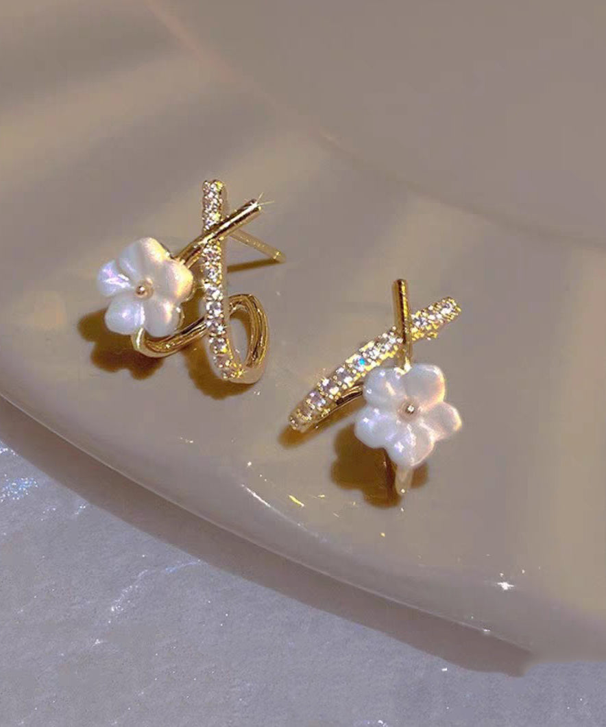 Cute White Copper Ovegild Zircon Cross Floral Stud Earrings