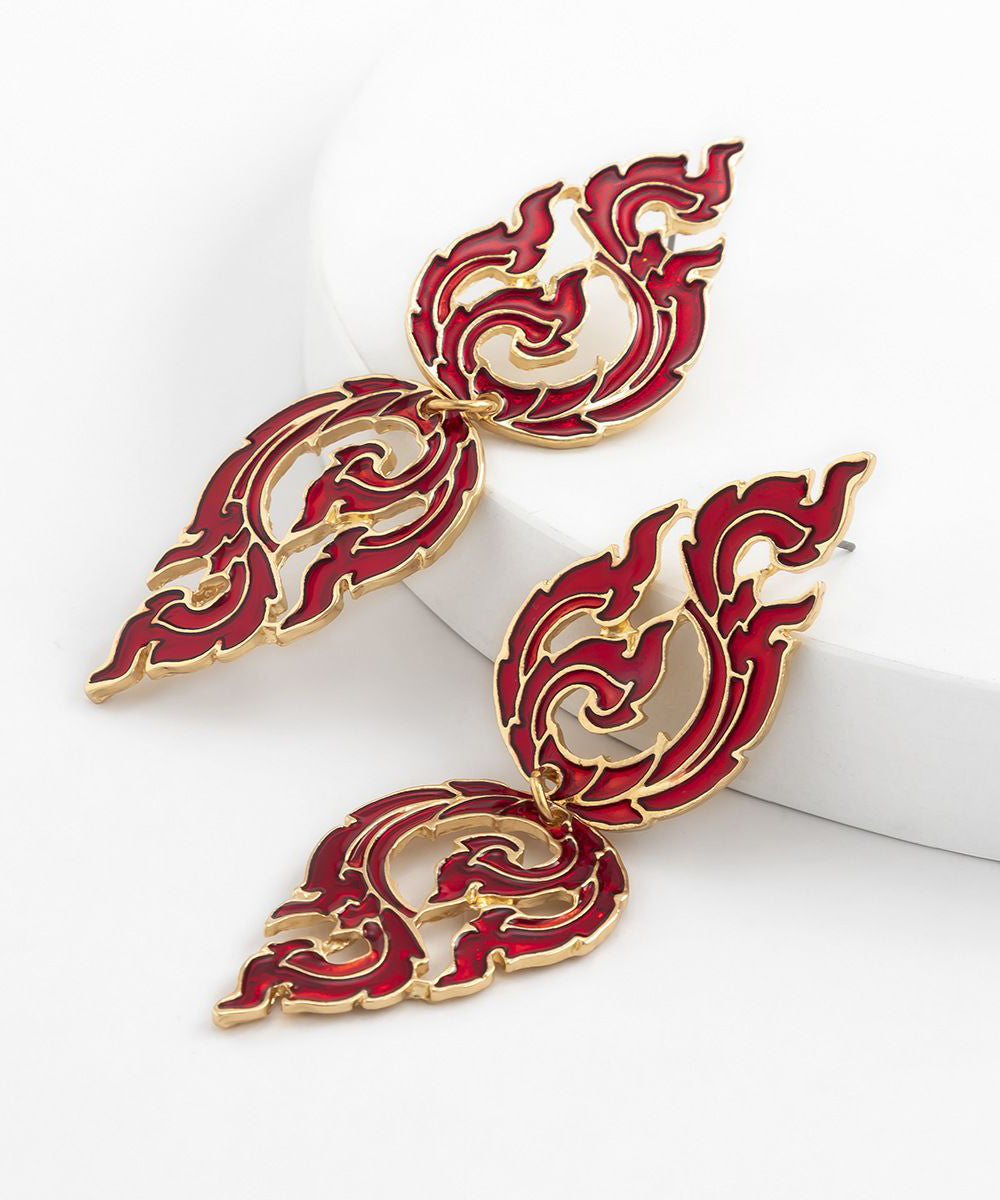 Loose Red Alloy Hollow Out Dripping Glaze Flame Drop Earrings