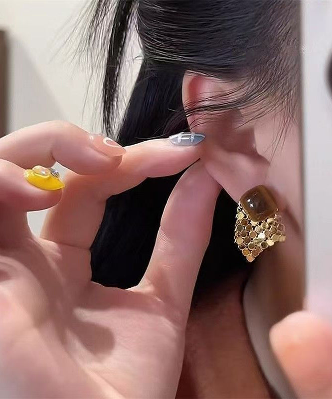 Modern Brown Copper Alloy Sequins TasselStud Earrings