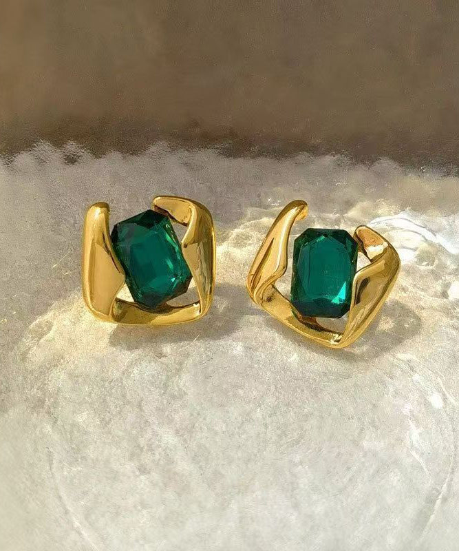 Modern Green Alloy Zircon Square Emerald Stud Earrings