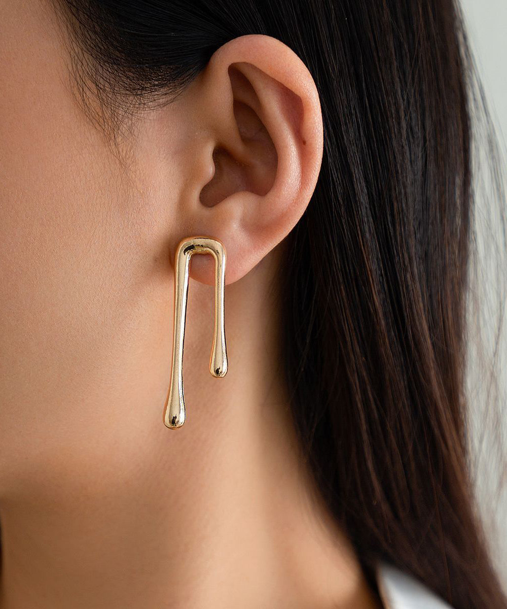 Unique Gold Metal Overgild Water Droplet Hoop Earrings