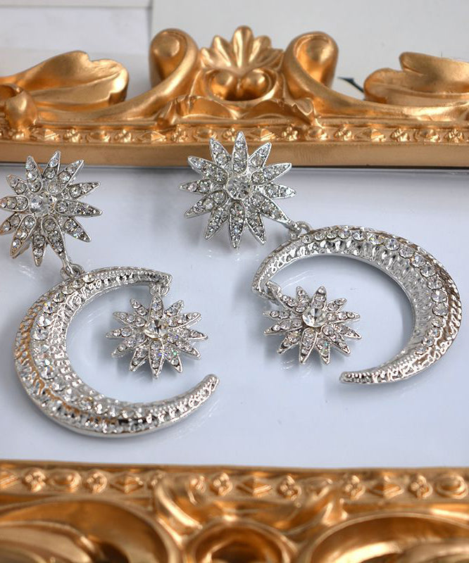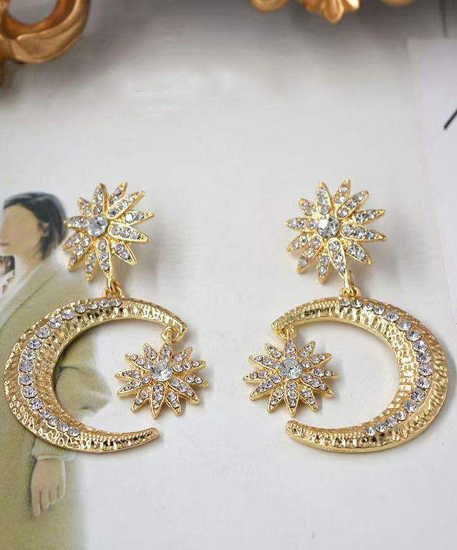 Bohemian Gold Metal Overgild Zircon Star Moon Drop Earrings