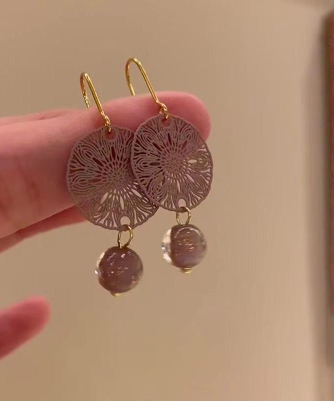 Chinese Style Light Purple Copper Overgild Hollow Out Window Paper-Cut Drop Earrings