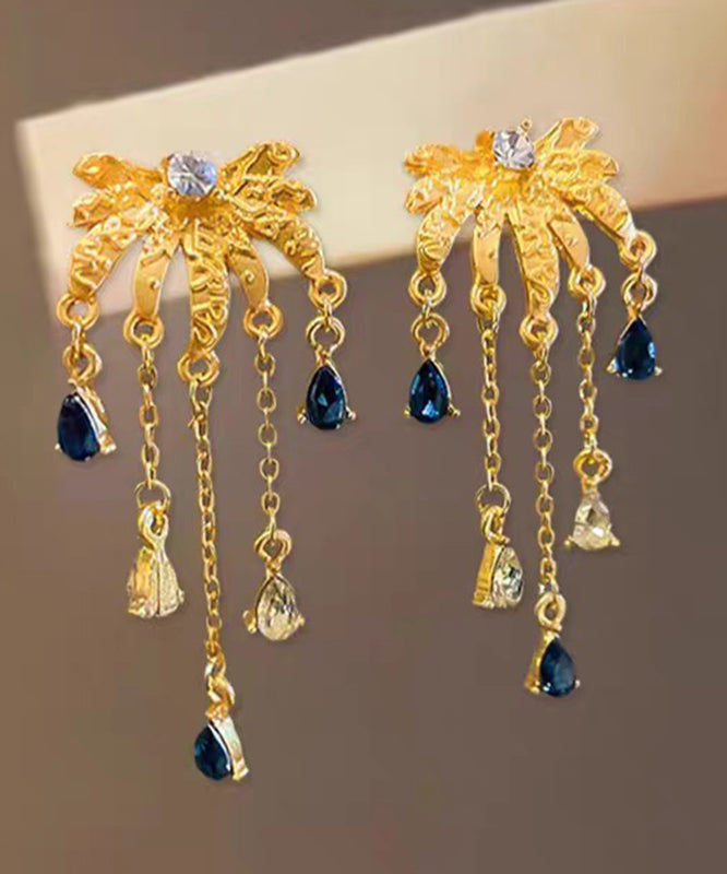 Fashion Gold Ancient Gold Zircon Fireworks Tassel Drop Earrings