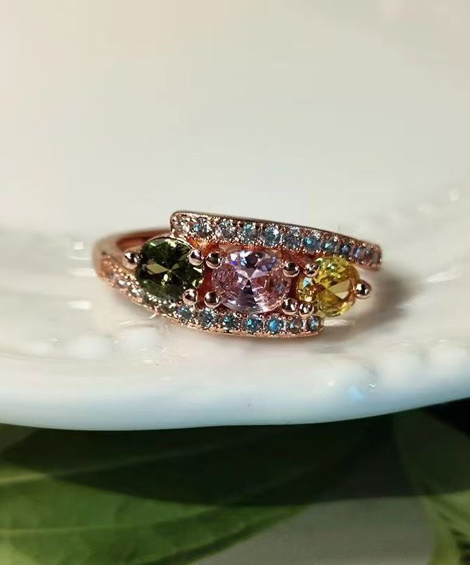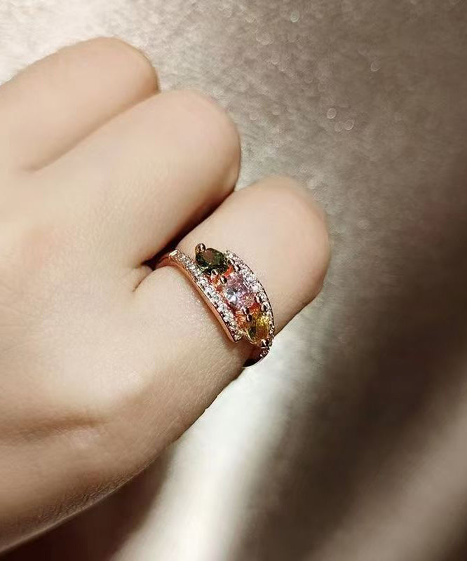 Fine Rose Gold Sterling Silver Overgild Zircon Gem Stone Open Rings