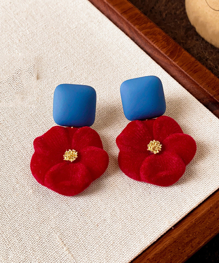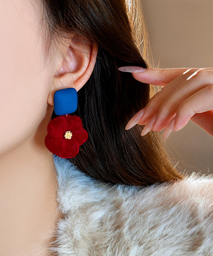 New Year Red Alloy Floral Flocking Stud Earrings