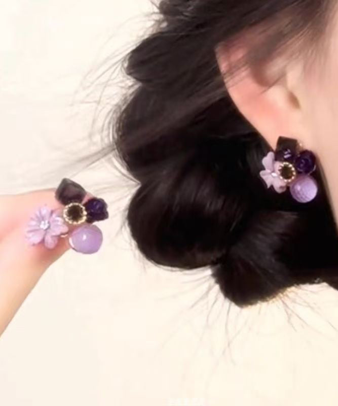 Original Design Purple Alloy Zircon Floral Stud Earrings