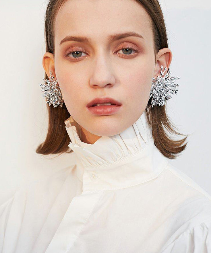Sparkling Crystal Burst Statement Drop Earrings