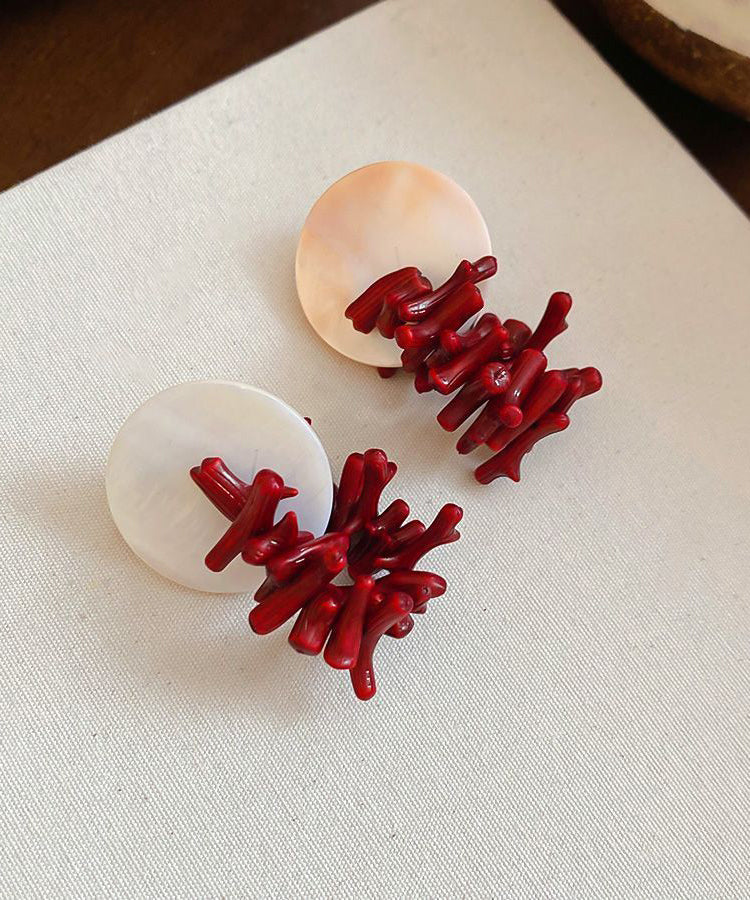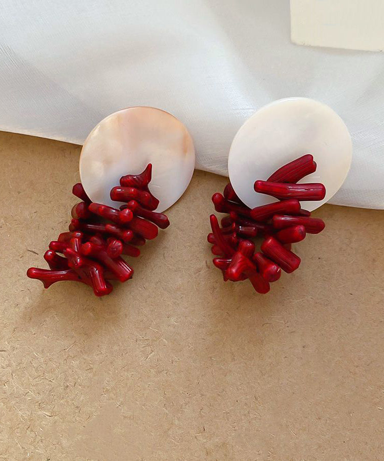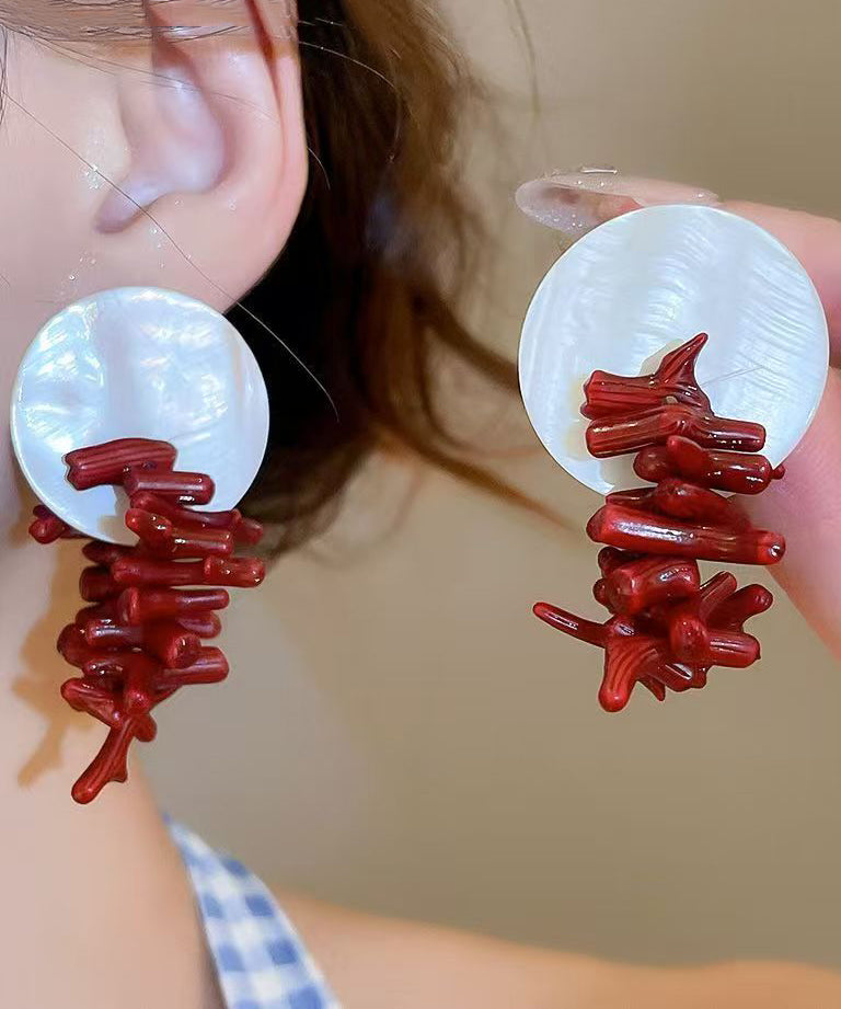Fashion Red Copper Alloy Shell Resin Drop Earrings