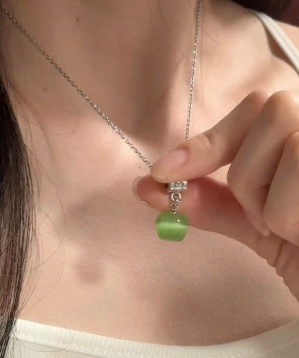 Fine Green Stainless Steel Green Apple Pendant Necklace