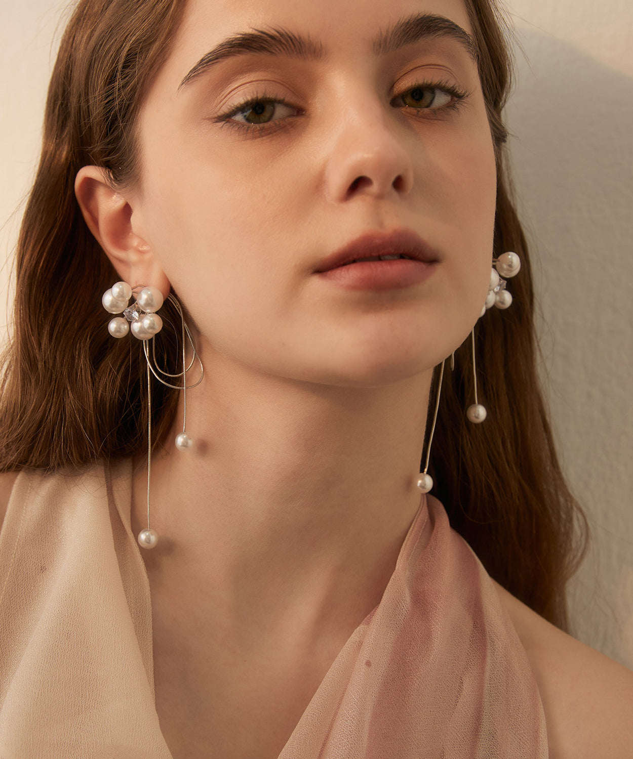 Loose White Sterling Silver Alloy Zircon Pearl Drop Earrings