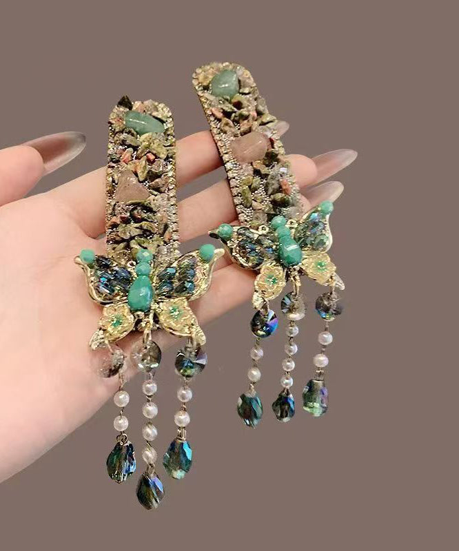Retro Green Alloy Zircon Butterfly Tassel A Pair Hairpin
