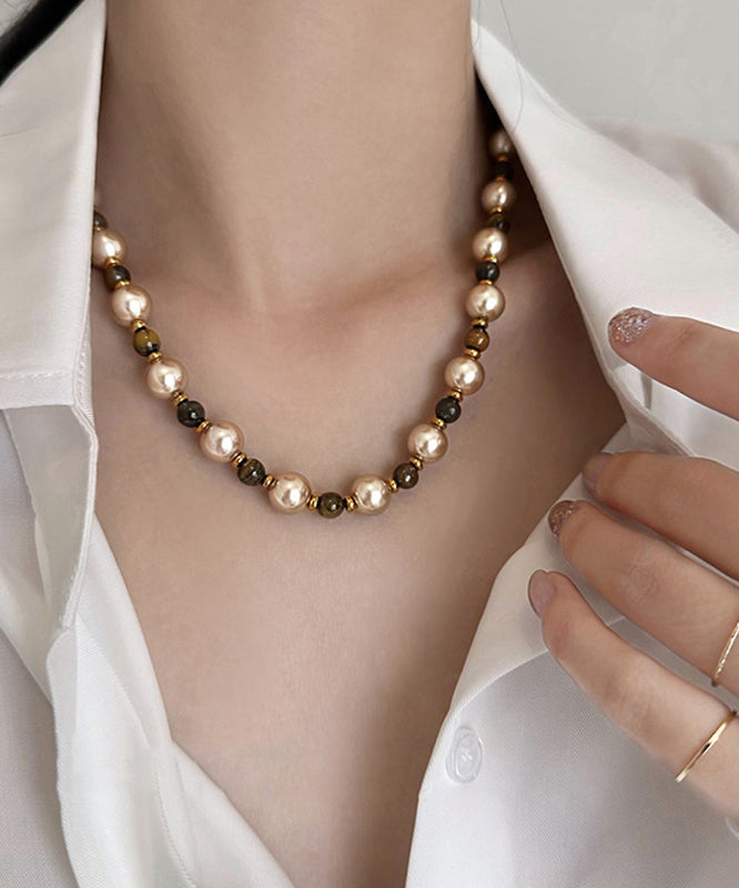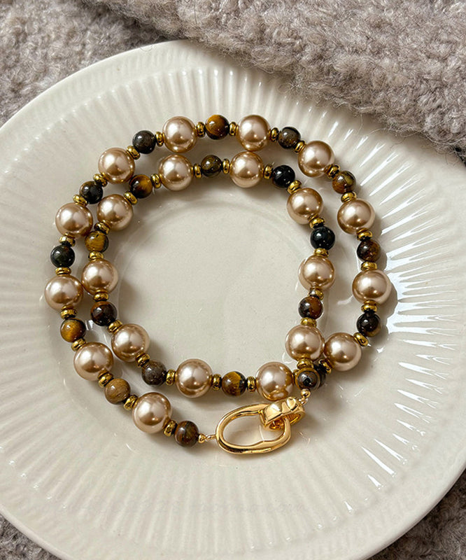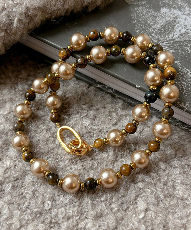 Fine Colorblock Alloy Tiger's Eye Pearl Patchwork Gratuated Bead Necklace