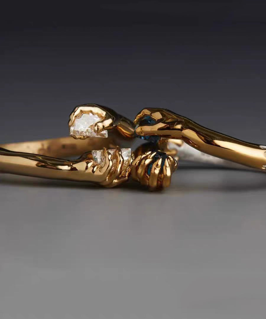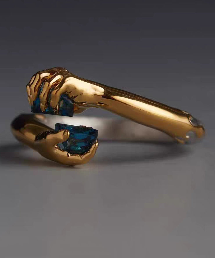 Boutique White Hand Zircon Open Mouth 14K Gold Bangl