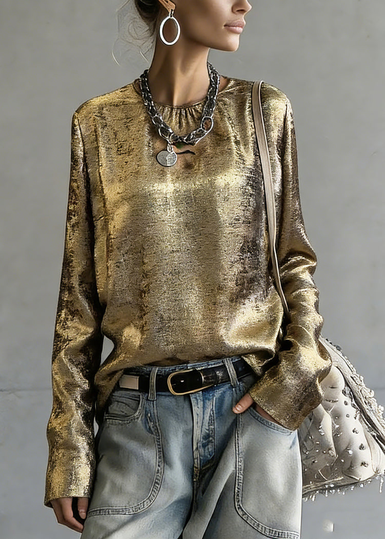 Chinese Style Gold O-Neck Patchwork Top Spring