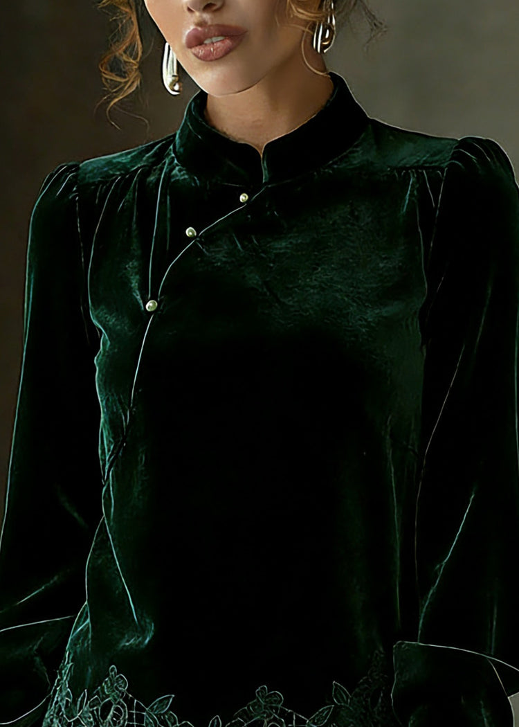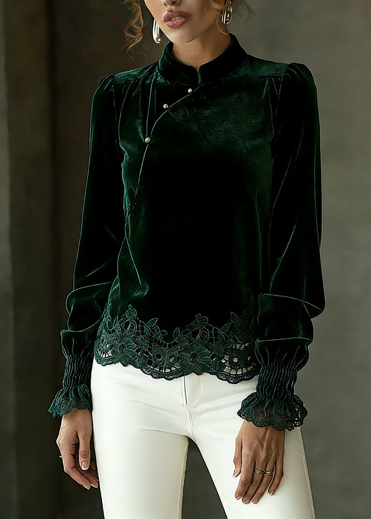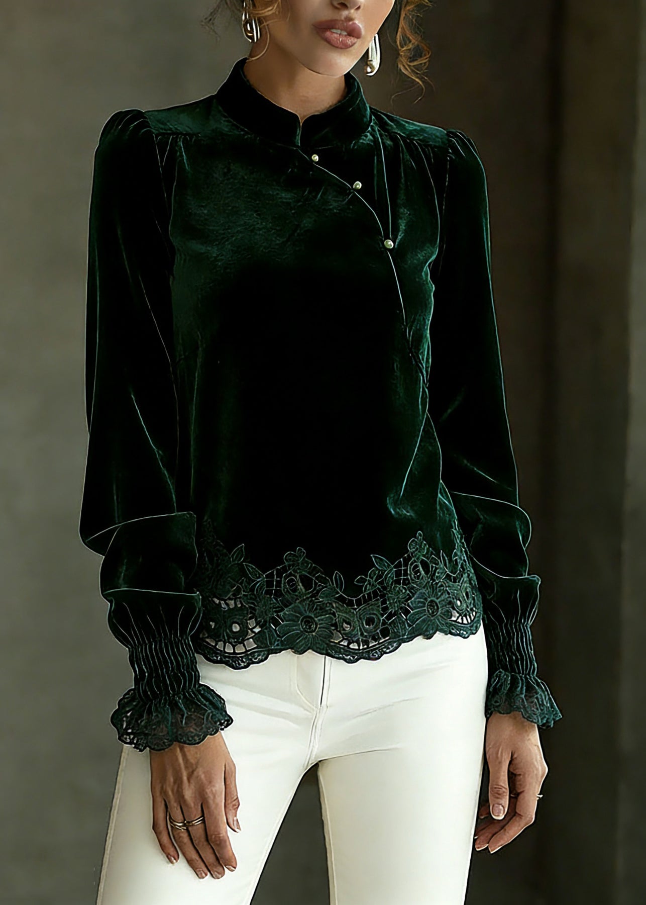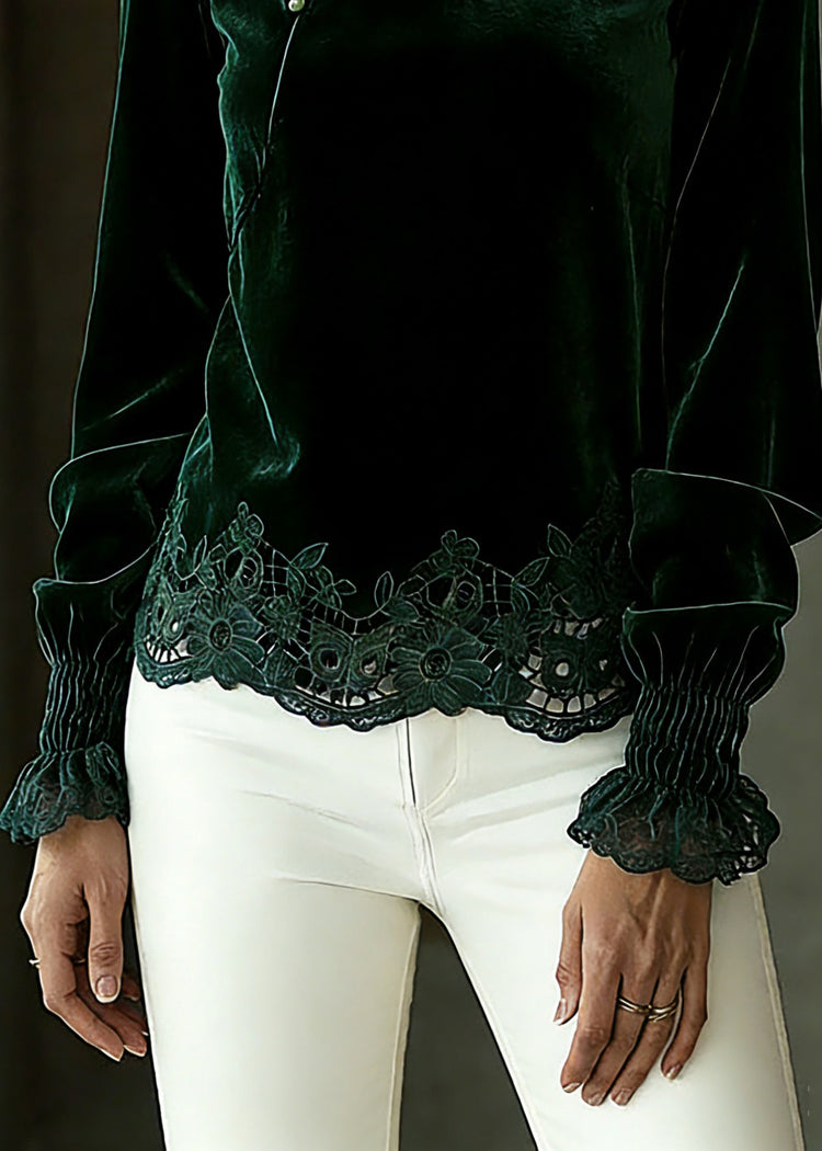 Vintage Blackish Green Hollow Out Shirts Lantern Sleeve