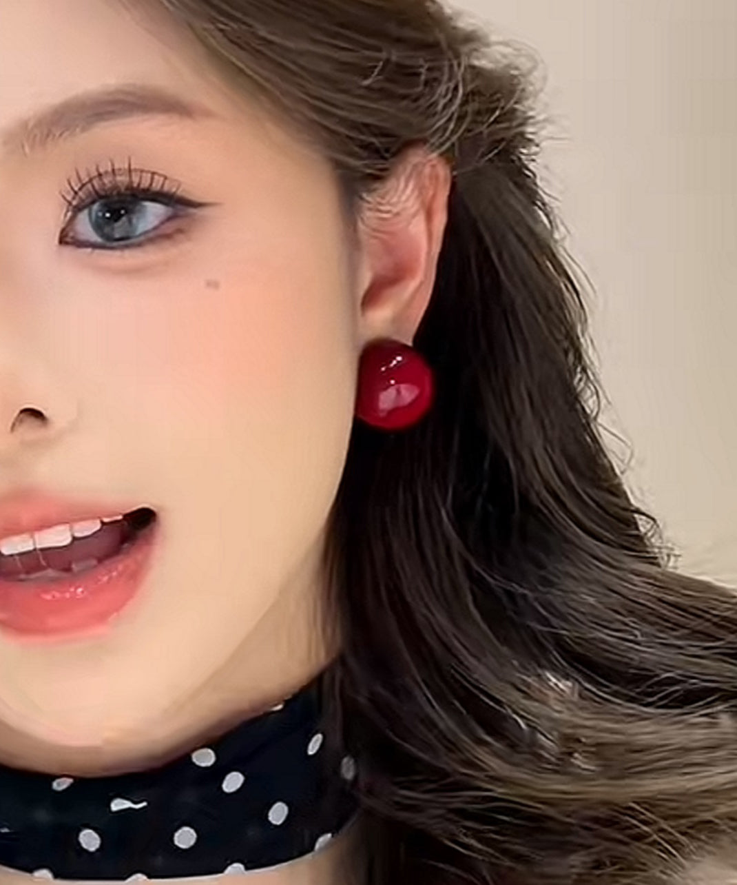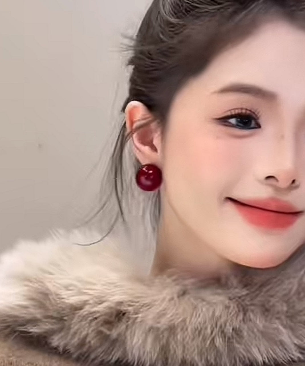 Modern Red Copper Overgild Pearl Stud Earrings
