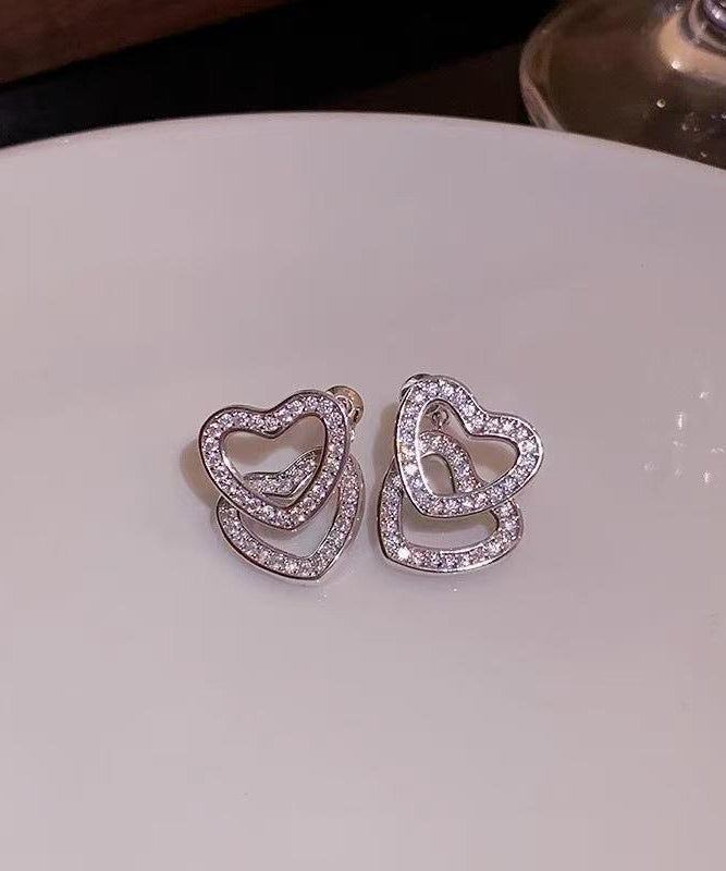 Chic Silk Copper Alloy Zircon Love Detachable Stud Earrings