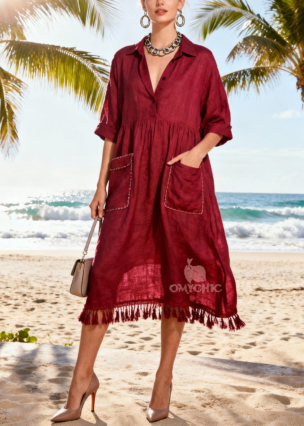 Simple Mulberry Tasseled Pockets Cotton Party Dress Summer