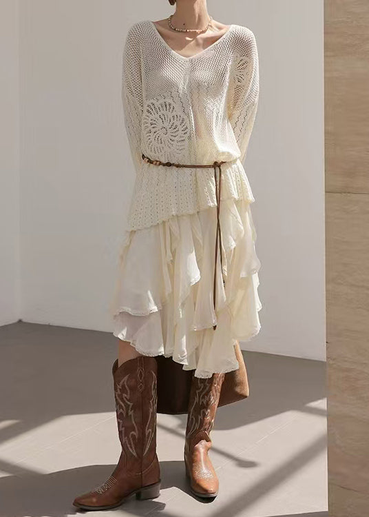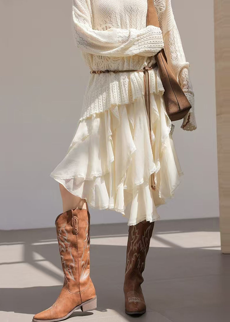 Bohemian White Asymmetrical Ruffles Chiffon Skirt Spring
