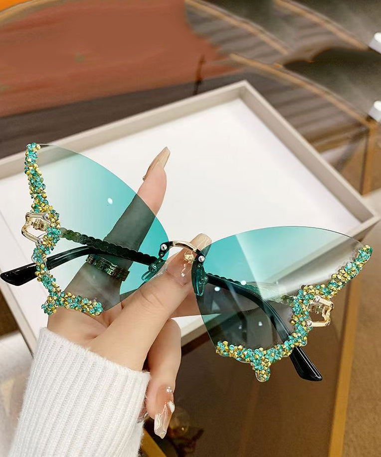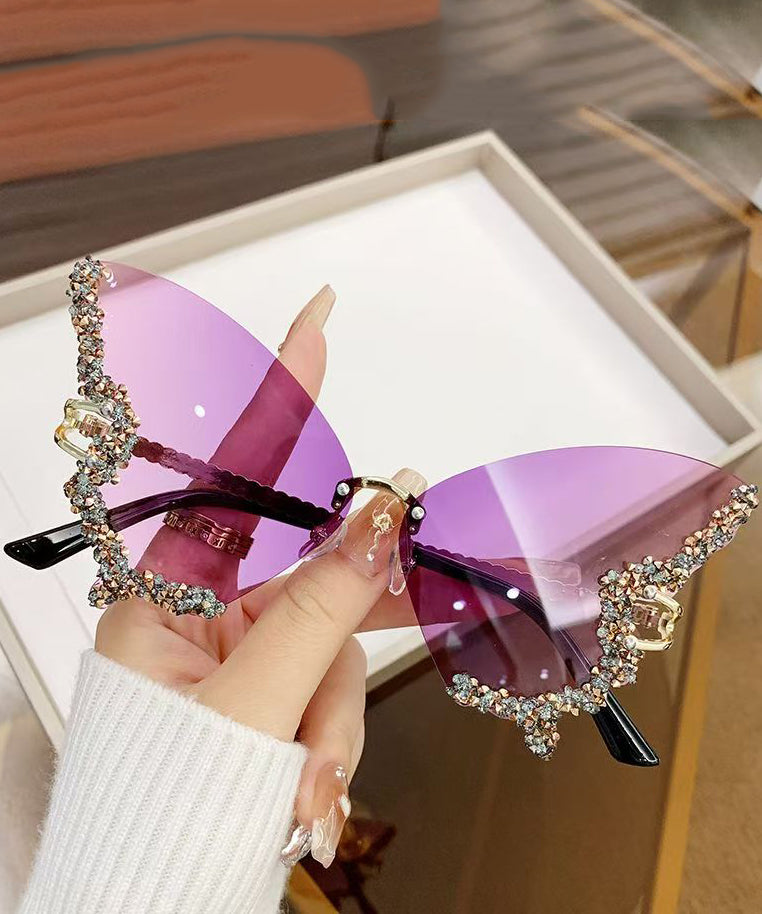 Modern Dark Grey Metal Zircon Butterfly UV Protection Sunglasses