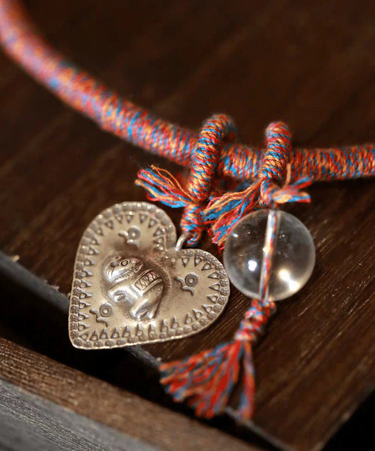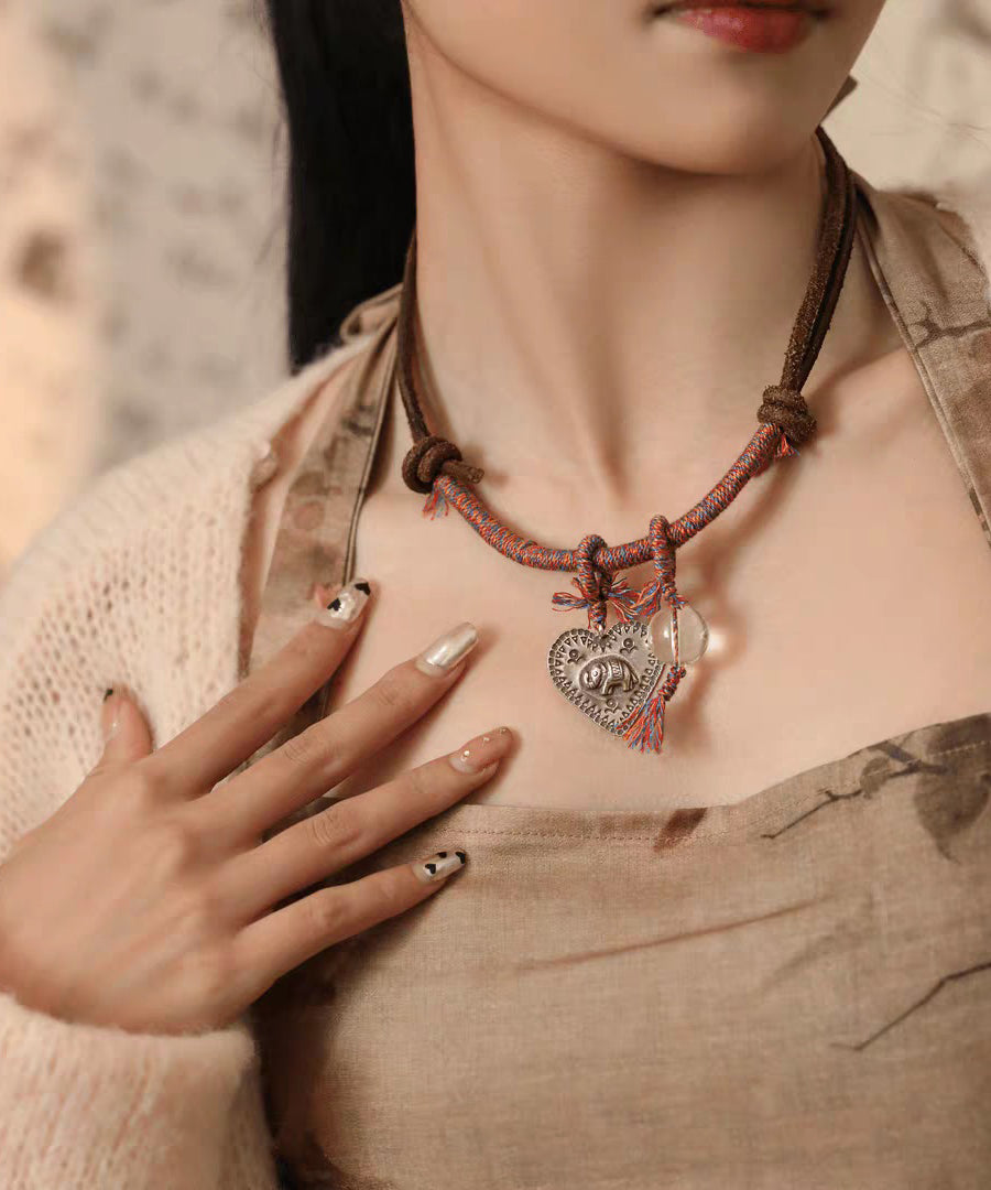 Retro Red 925 Silver Weave Elephant Love Pendant Necklace
