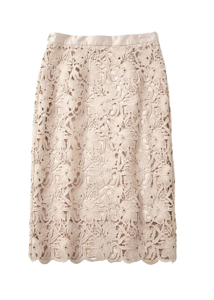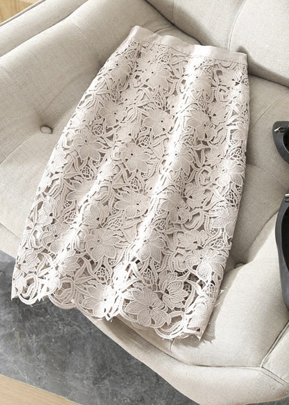 New Light Pink Hollow Out Lace High Waisted Skirts Summer