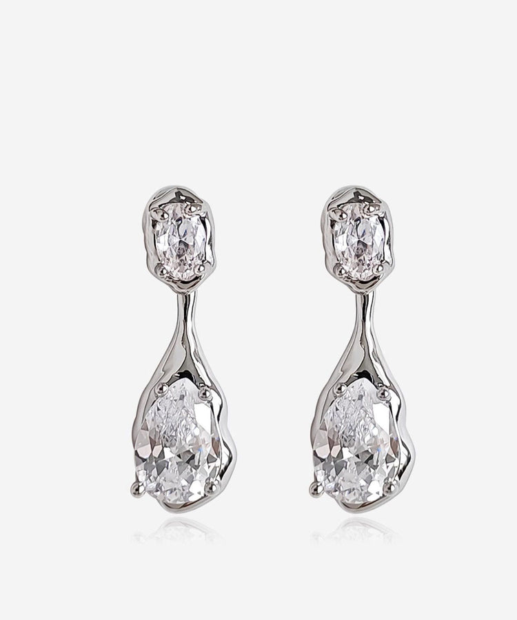 Light Luxury Silver Needle Water Droplet Zircon Earrings