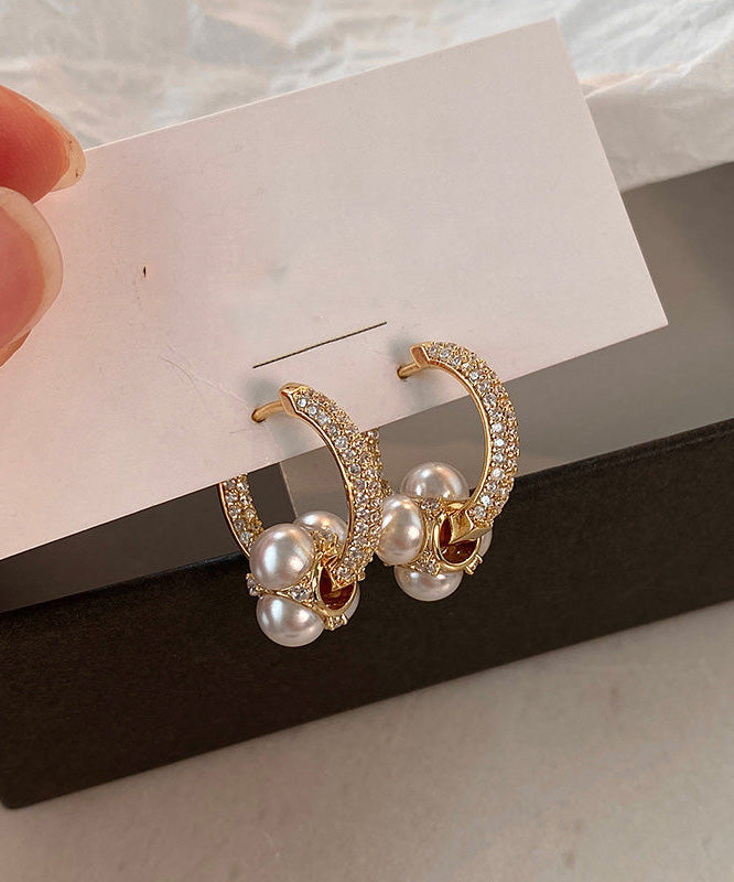 New Gold Zircon Gilding Pearl Earrings