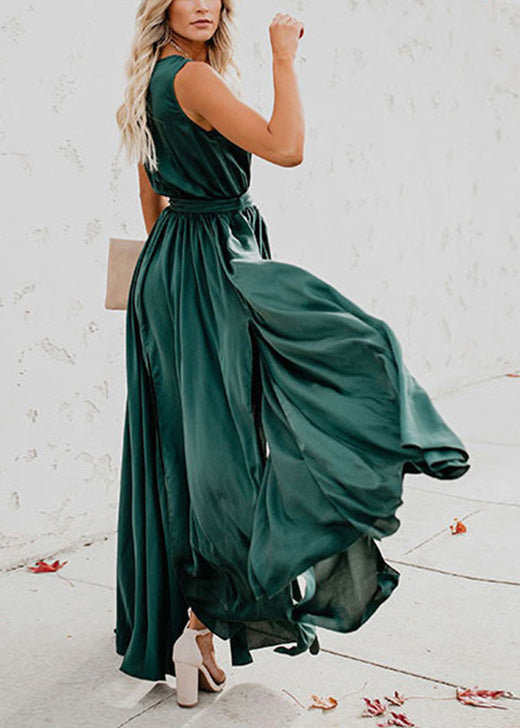 Unique Yellow V Neck Side Open Lace Up Silk Dress Summer