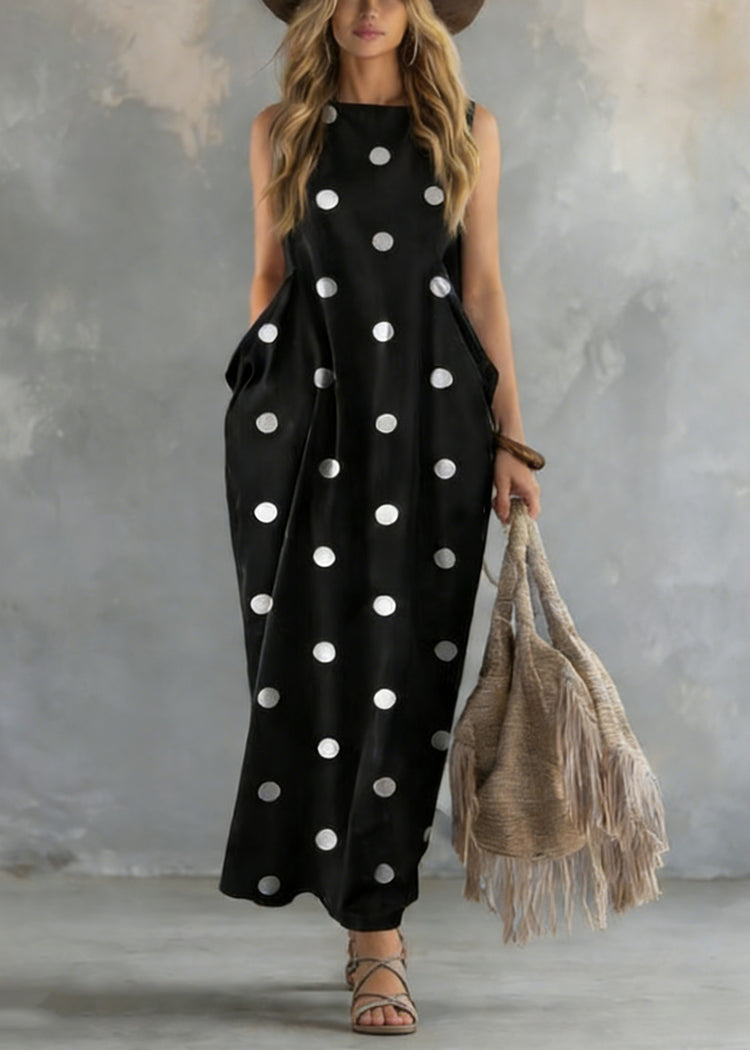 Grace Black Dot Print Pockets Long Dresses Sleeveless