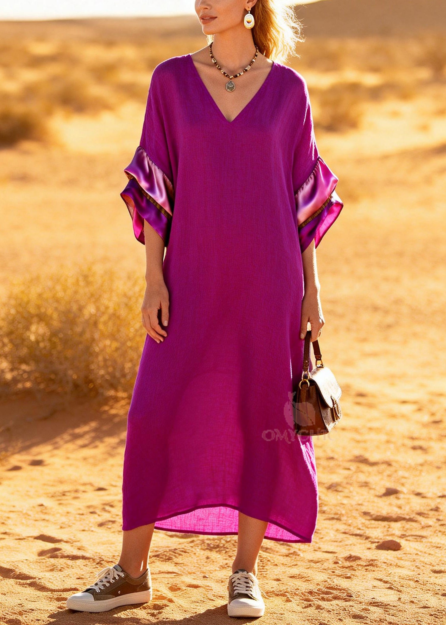 Style Purple Oversized Patchwork Cotton Holiday Dress Summer