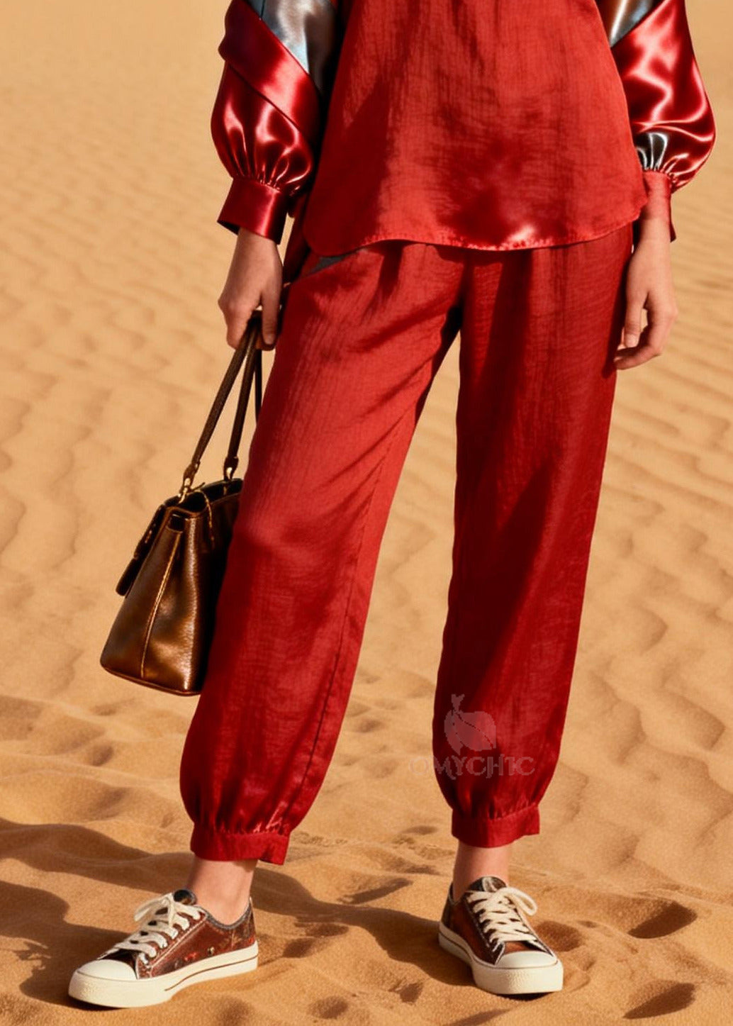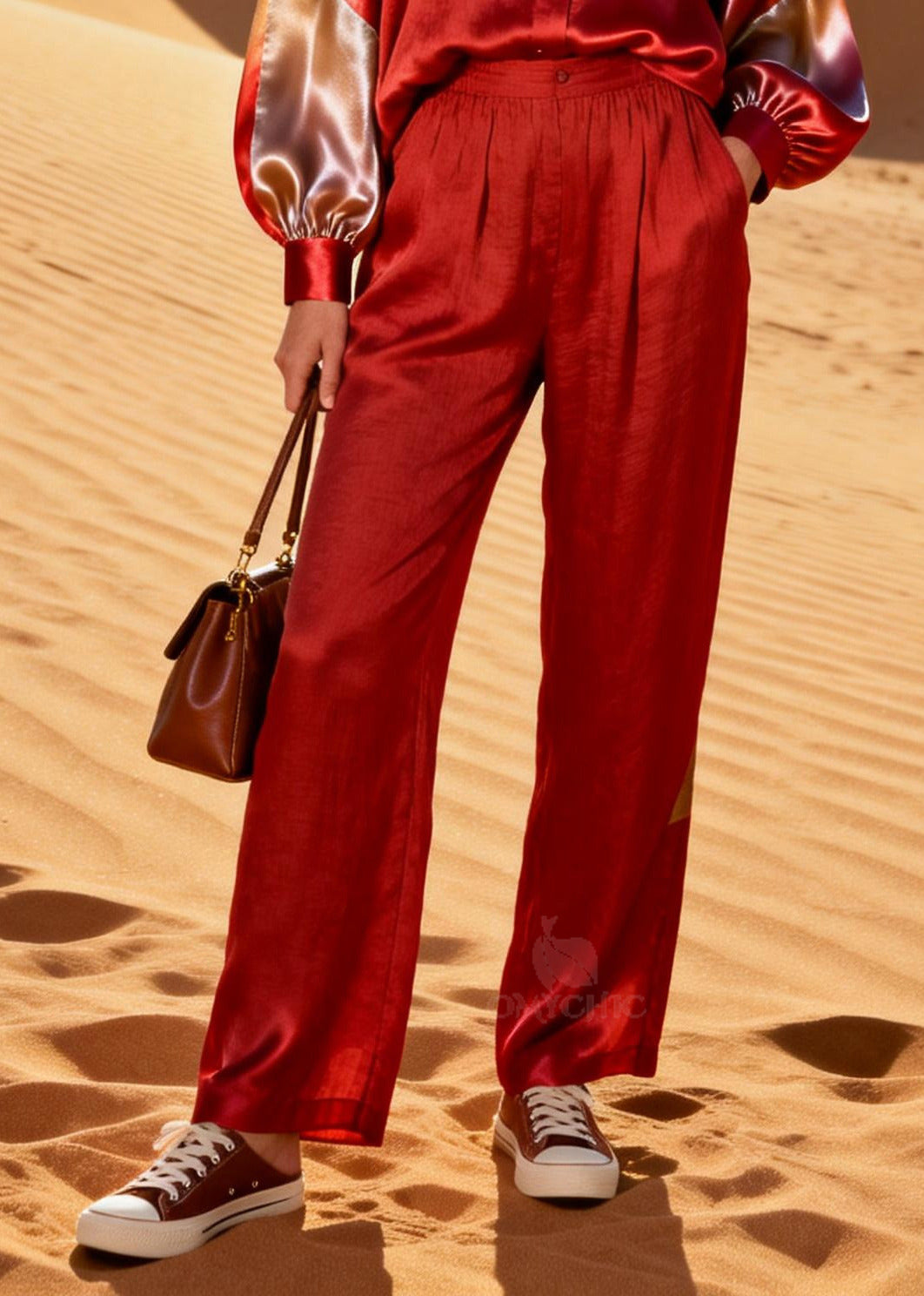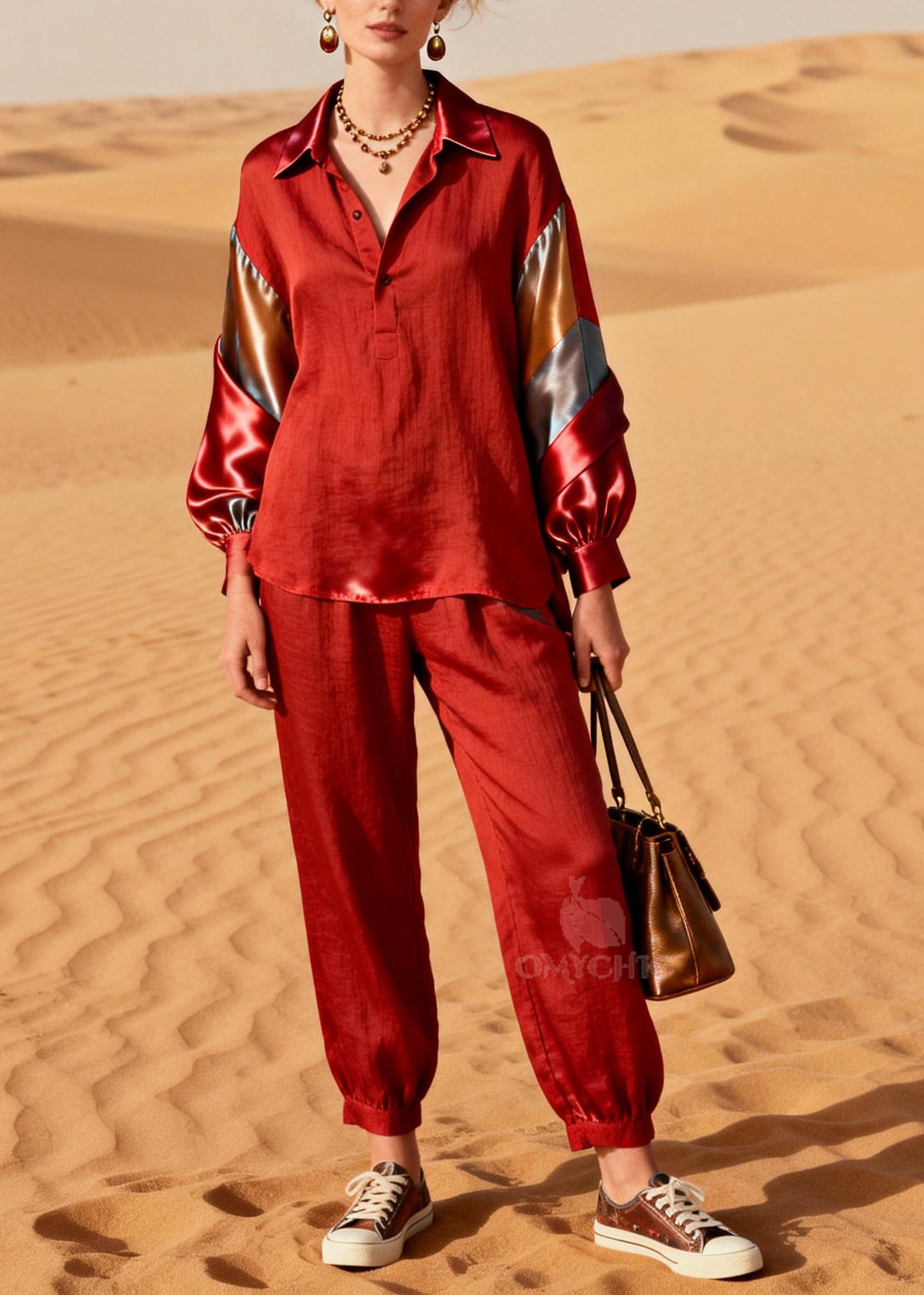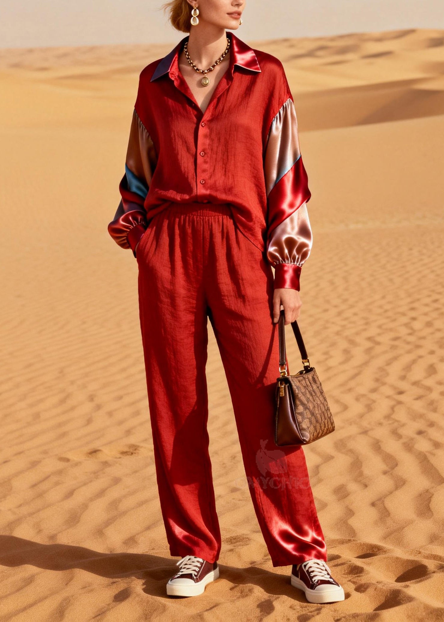 Women Rose Oversized Patchwork Silk Cotton Women Sets 2 Pieces
