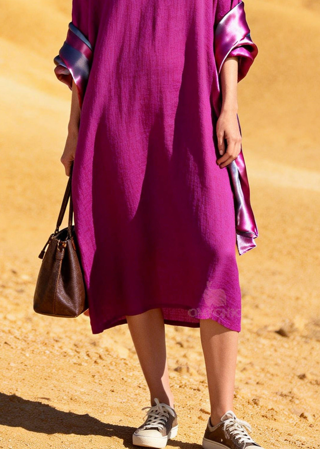 Unique Purple Oversized Patchwork Cotton Dress Summer