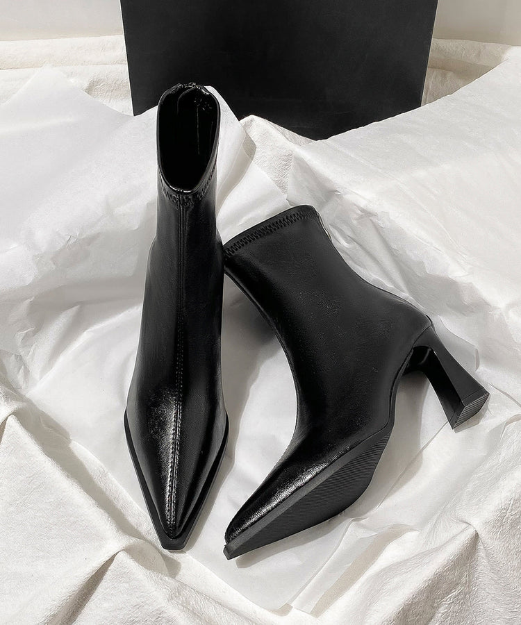 Black High Heel Faux Leather Stylish Splicing Boots