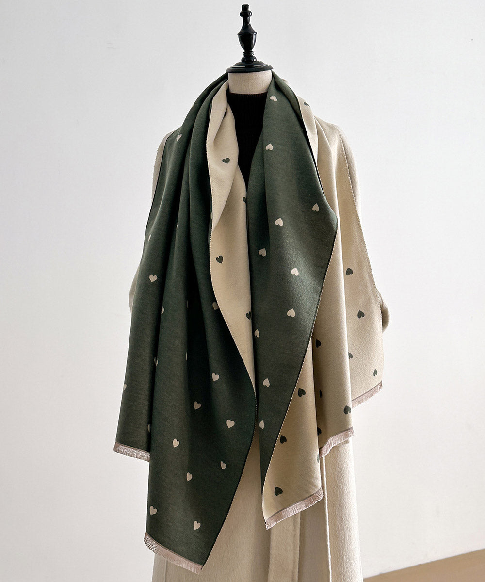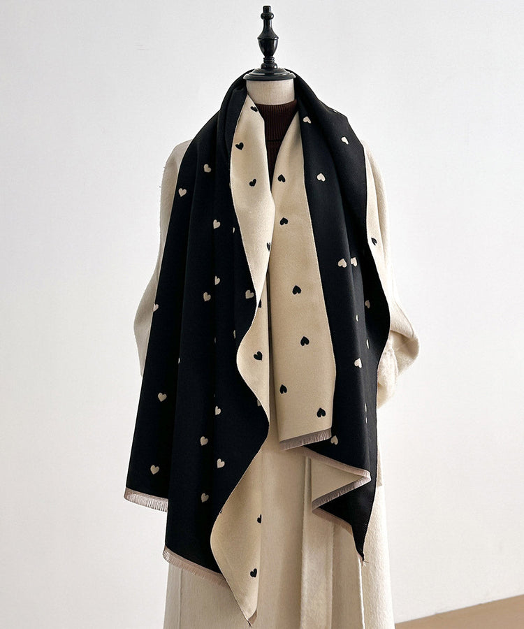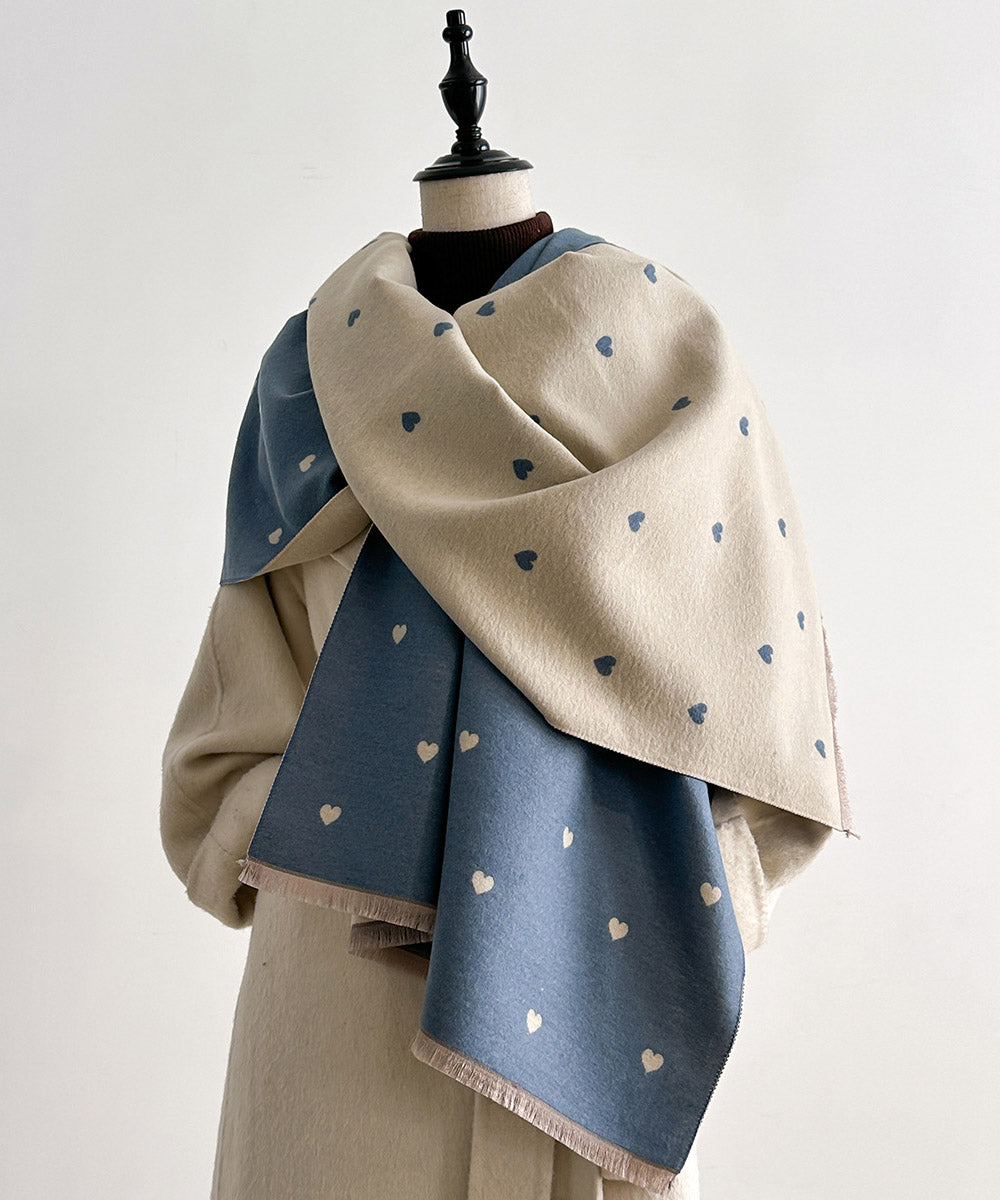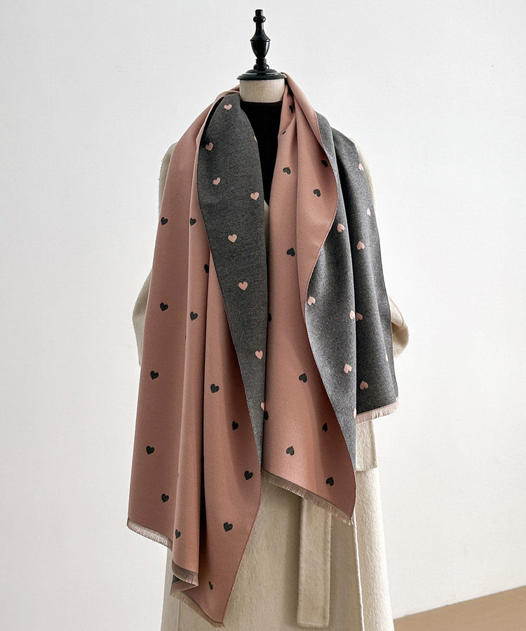 Fashion Red Heart Print Wear On Both Sides Faux Cashmere Scarf