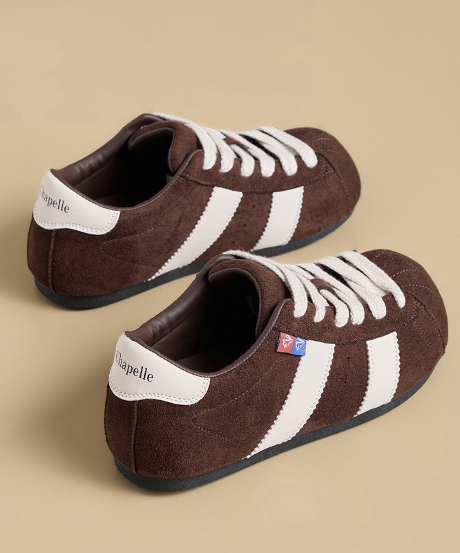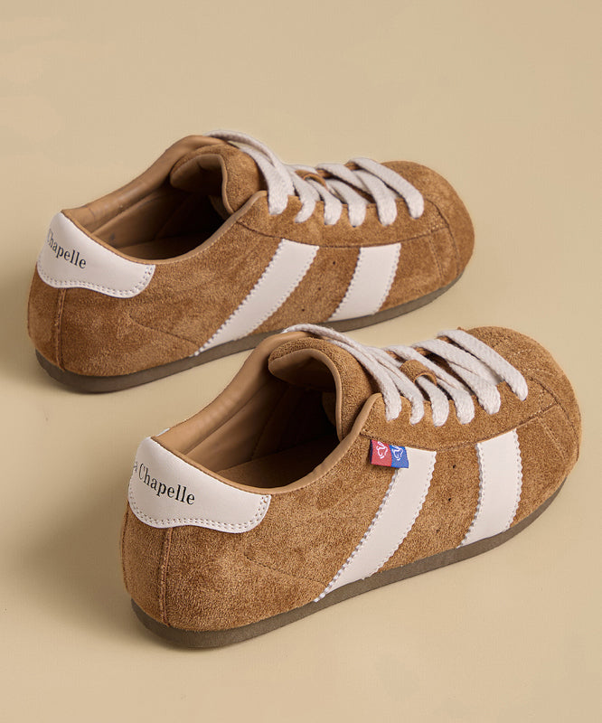 Leopard Suede Flat Shoes Women Splicing Lace Up