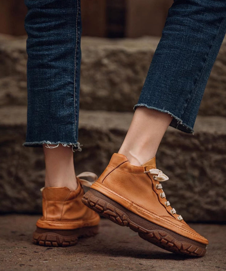 Red Platform Shoes Cowhide Leather Stylish Splicing Lace Up