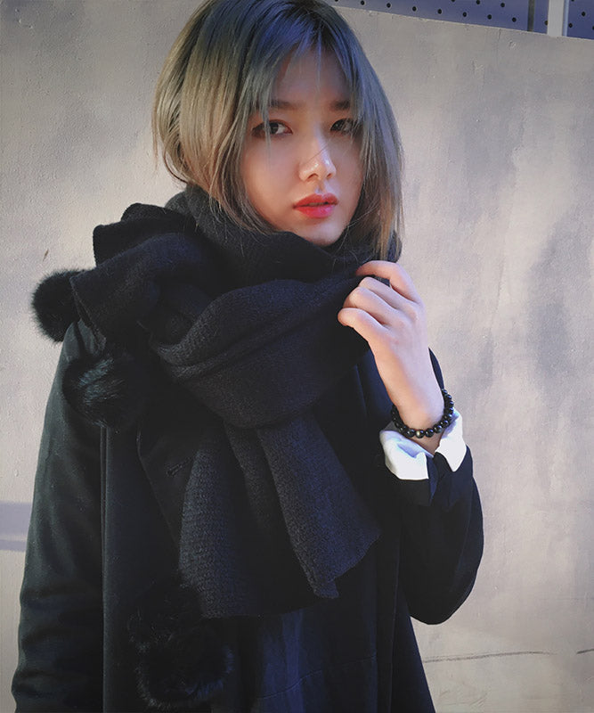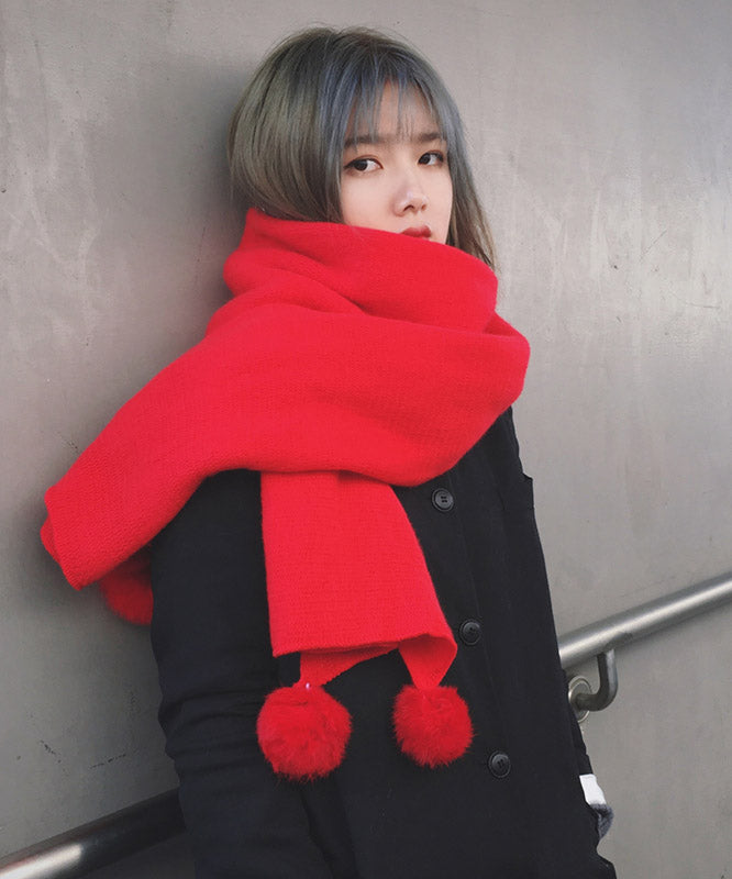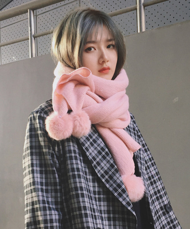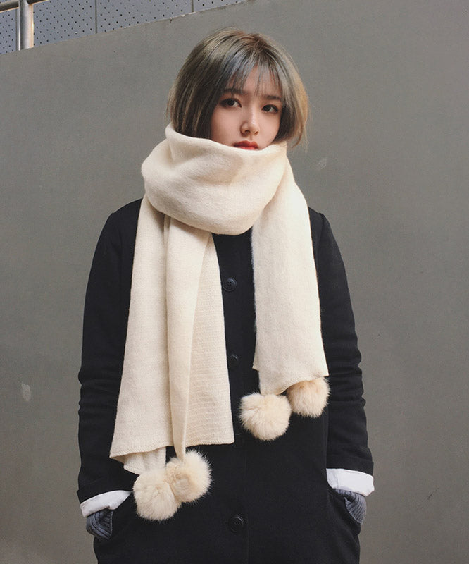 Stylish Versatile Yellow Fuzzy Ball Decorated Faux Cashmere Scarf