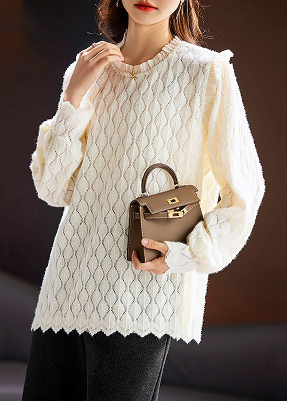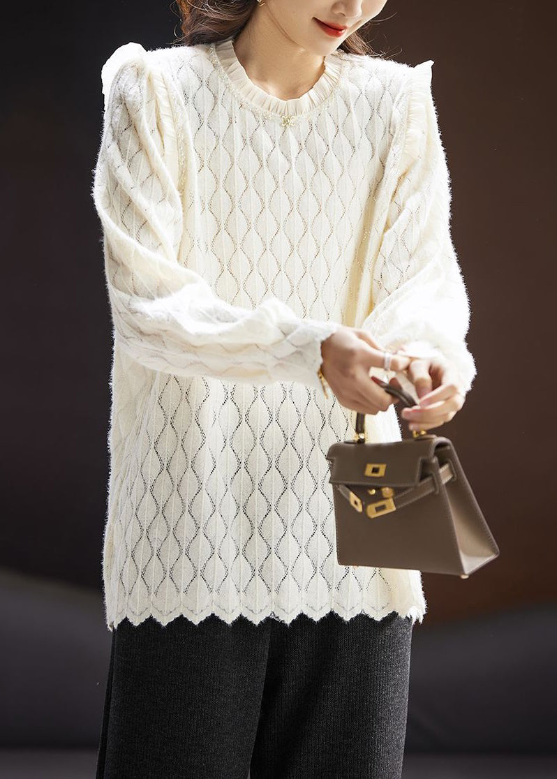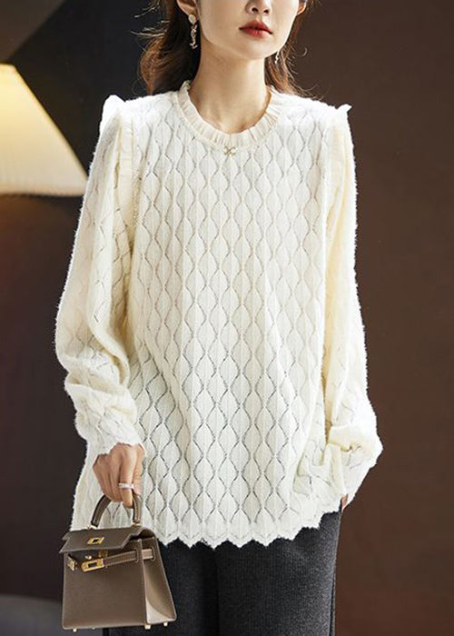 Beige Patchwork Lace Blouses O Neck Long Sleeve