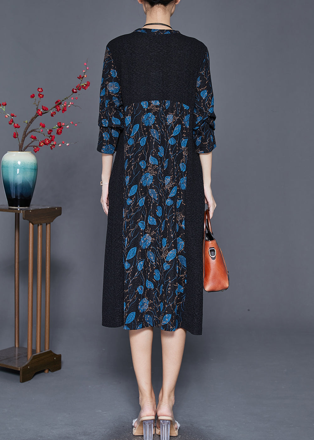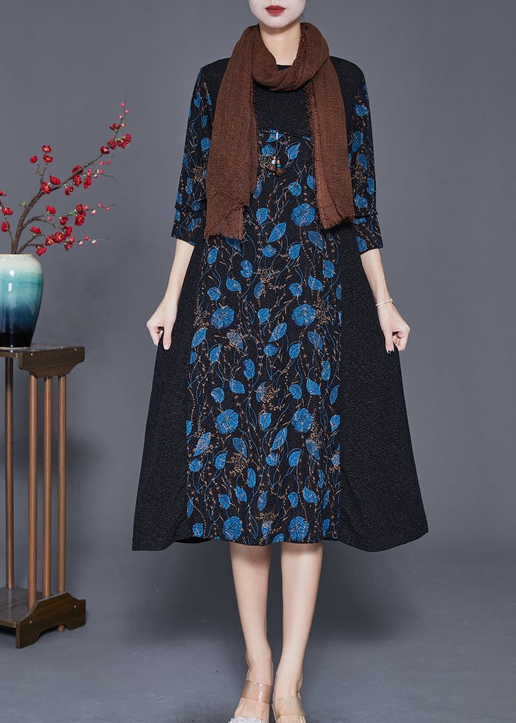 Blue Print Spandex Vacation Dresses Silm Fit Bracelet Sleeve